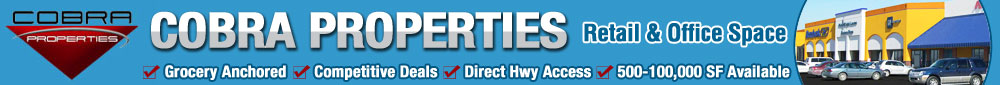 Cobra Properties specializes in shopping centers and office parks. We own and operate Community Centers in Appleton, WI, Odessa, MO, Robinsonville, MS, and Seymour, IN. We offer many different leasing options including month to month. Cobra Properties will assist you in finding the best solution for your business. Give us a call and see what we have to offer!
